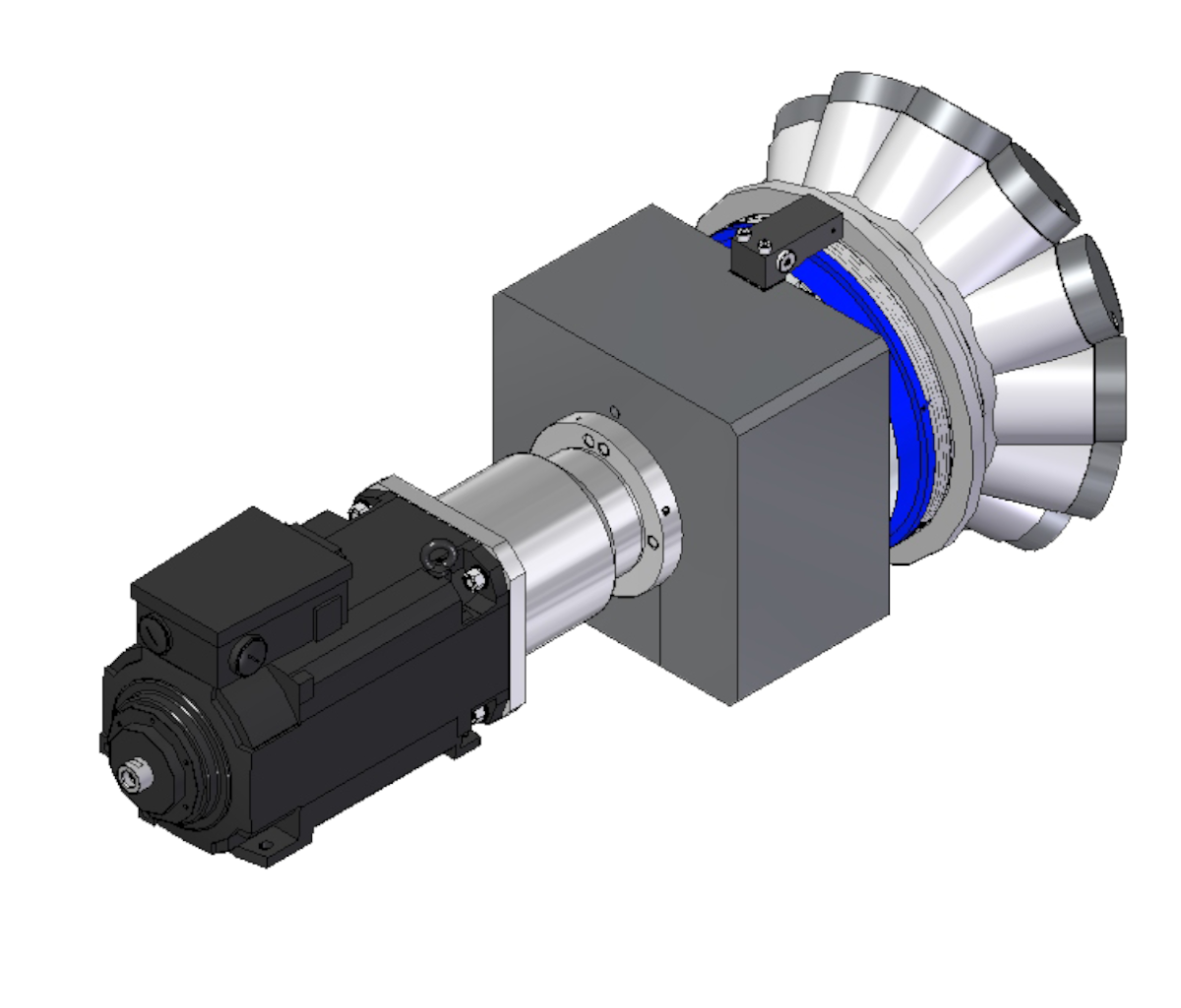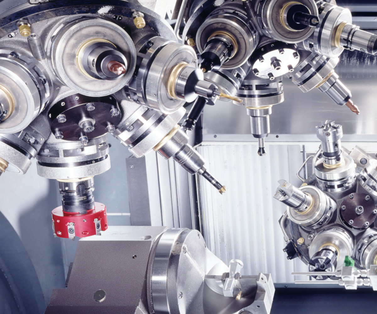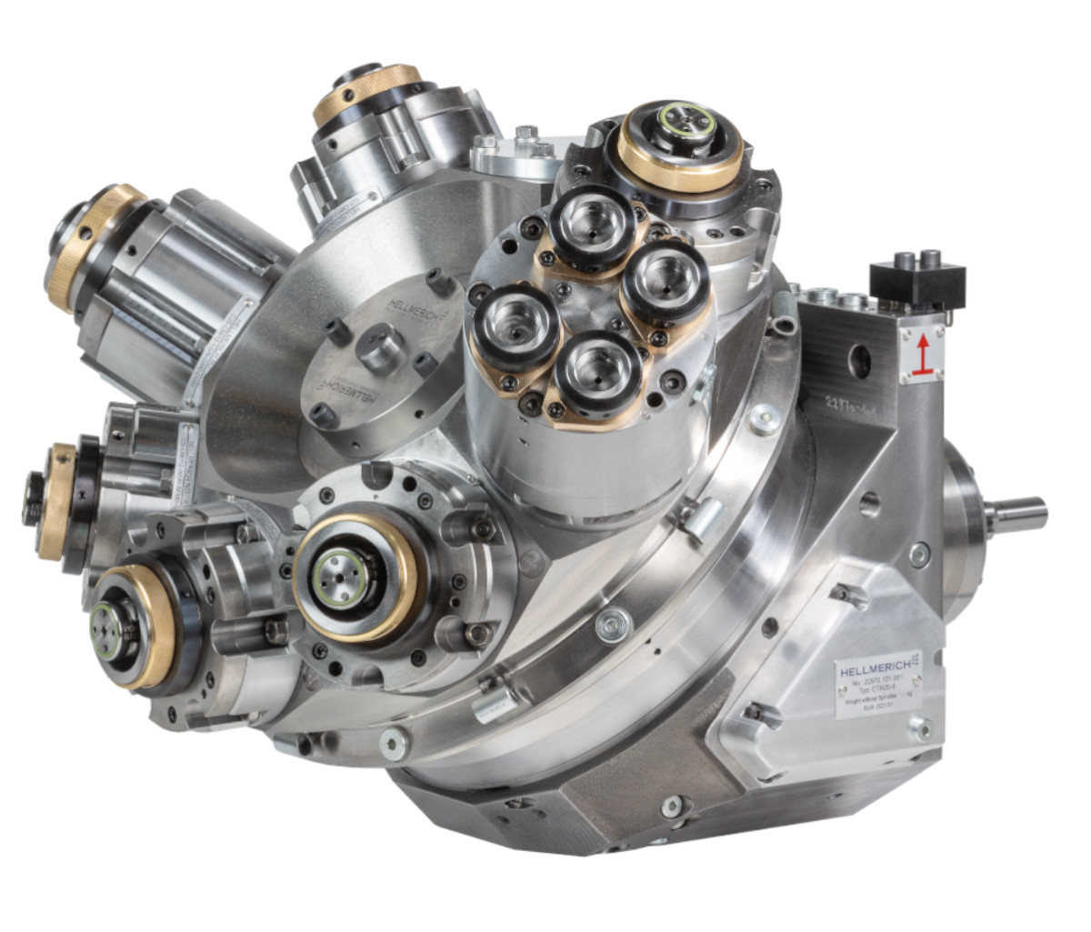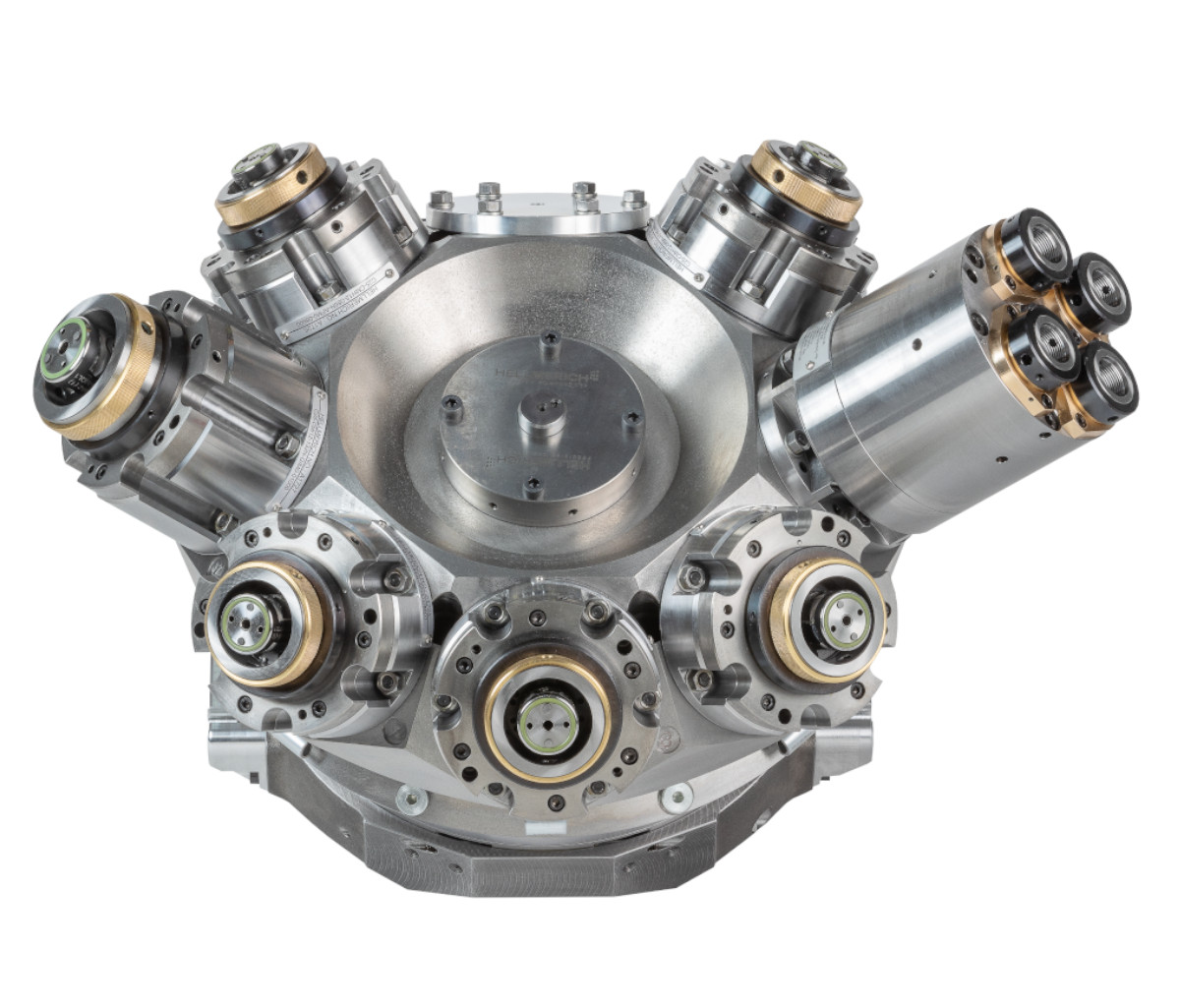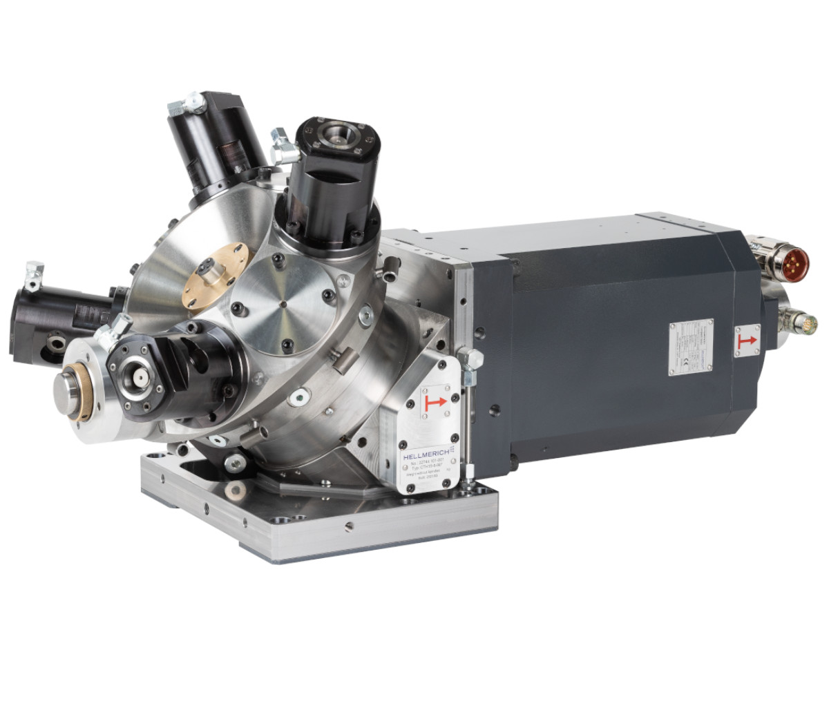 The Hellmerich crown turrets can be equipped with spindles and driven tools, such as multi-spindle heads or angular heads. Superstructures such as pneumatic grinding spindles are also available, as are VDI fixtures for rigid tools.