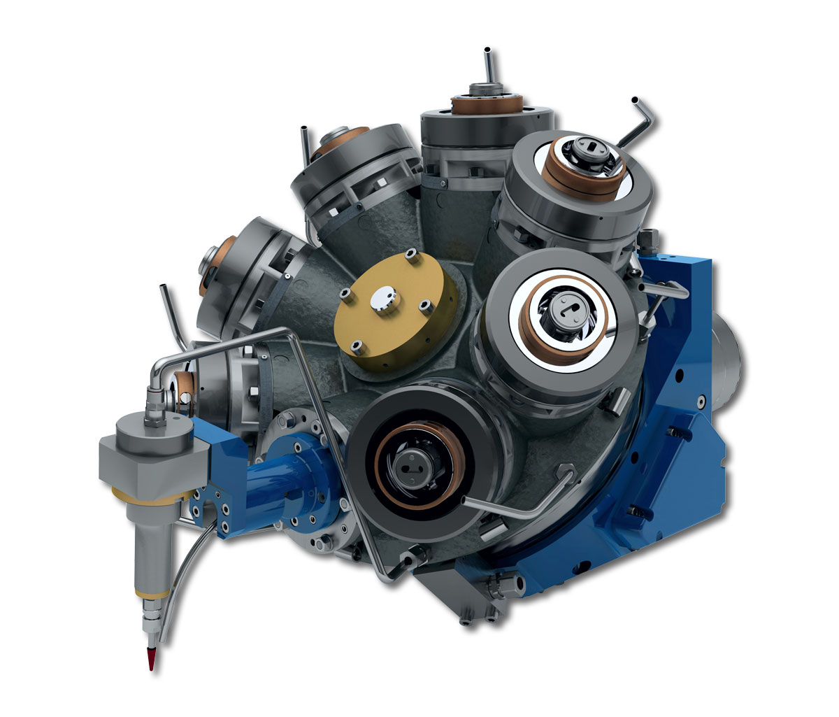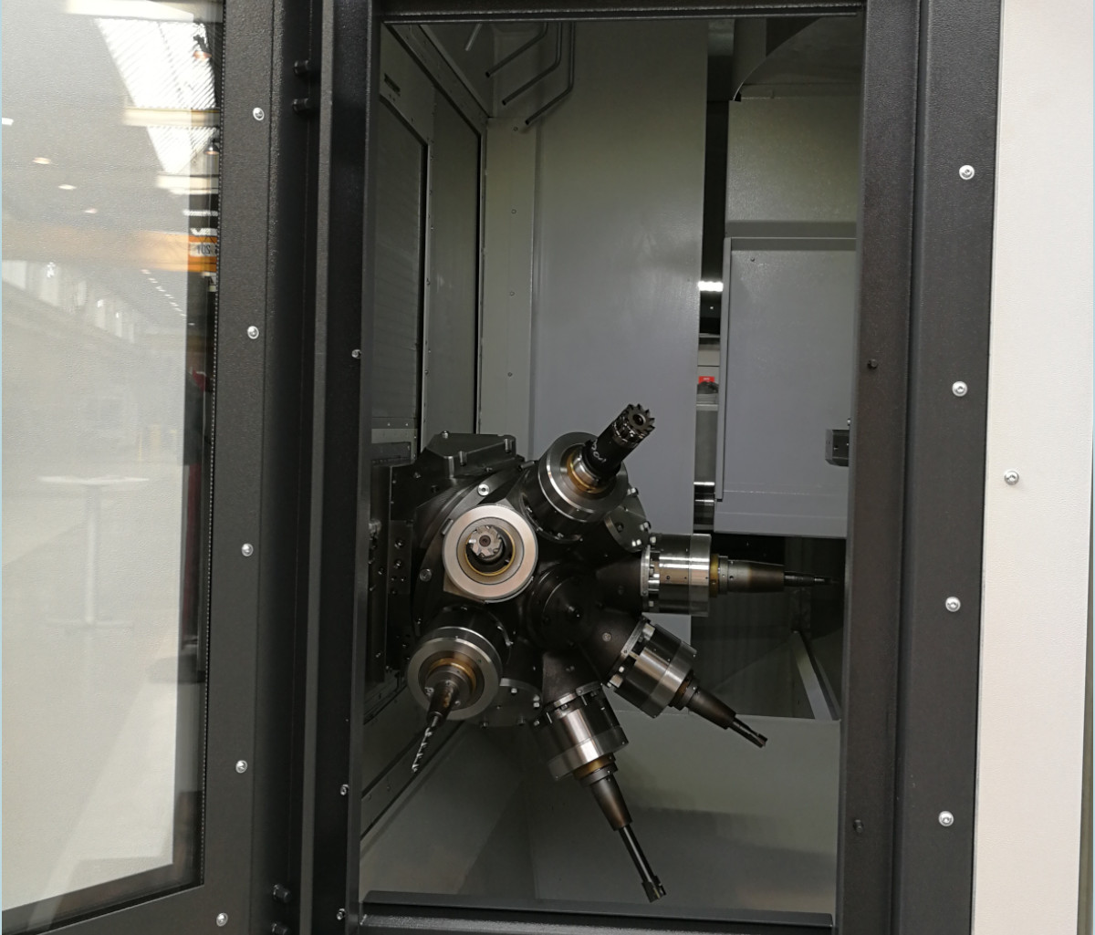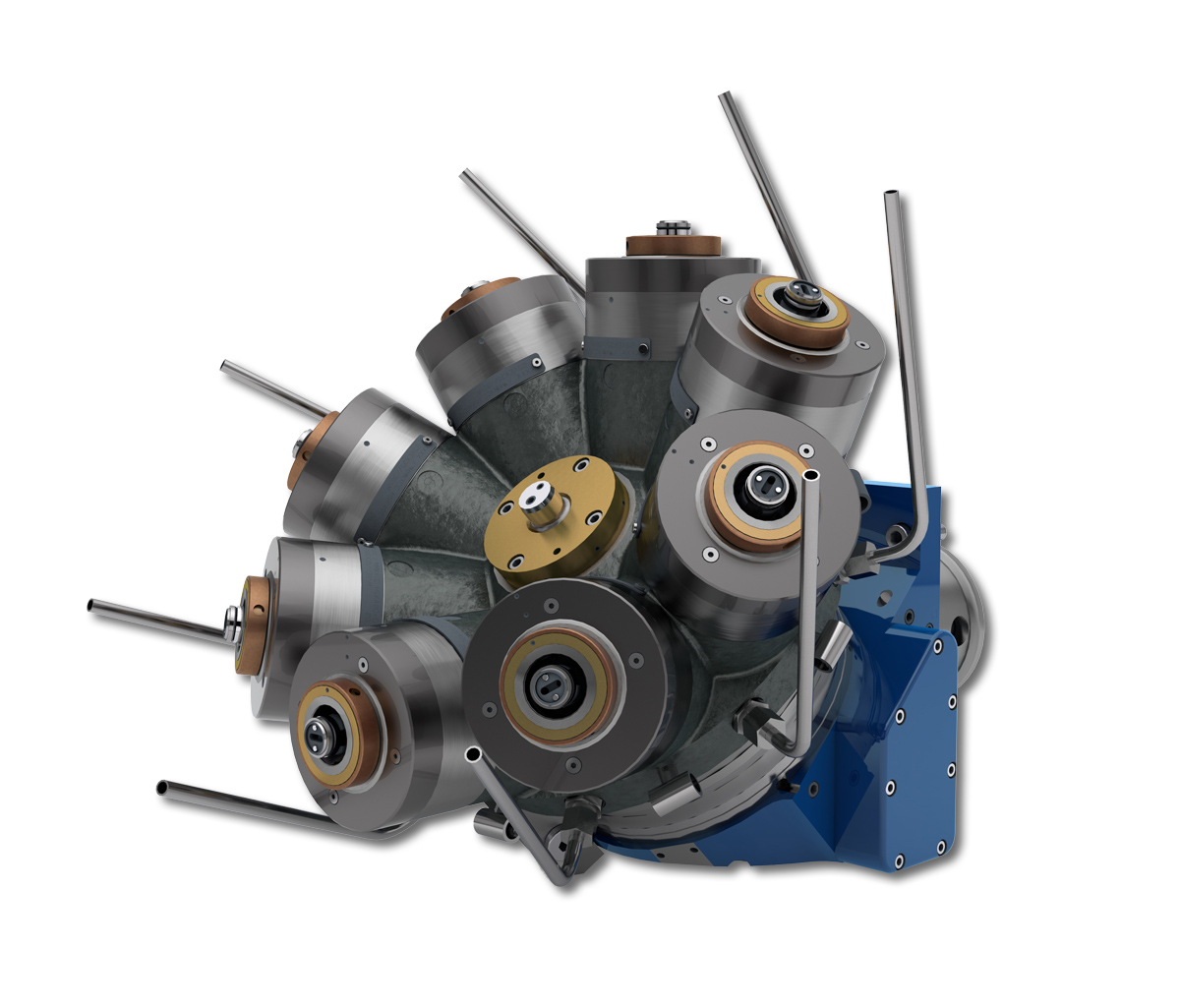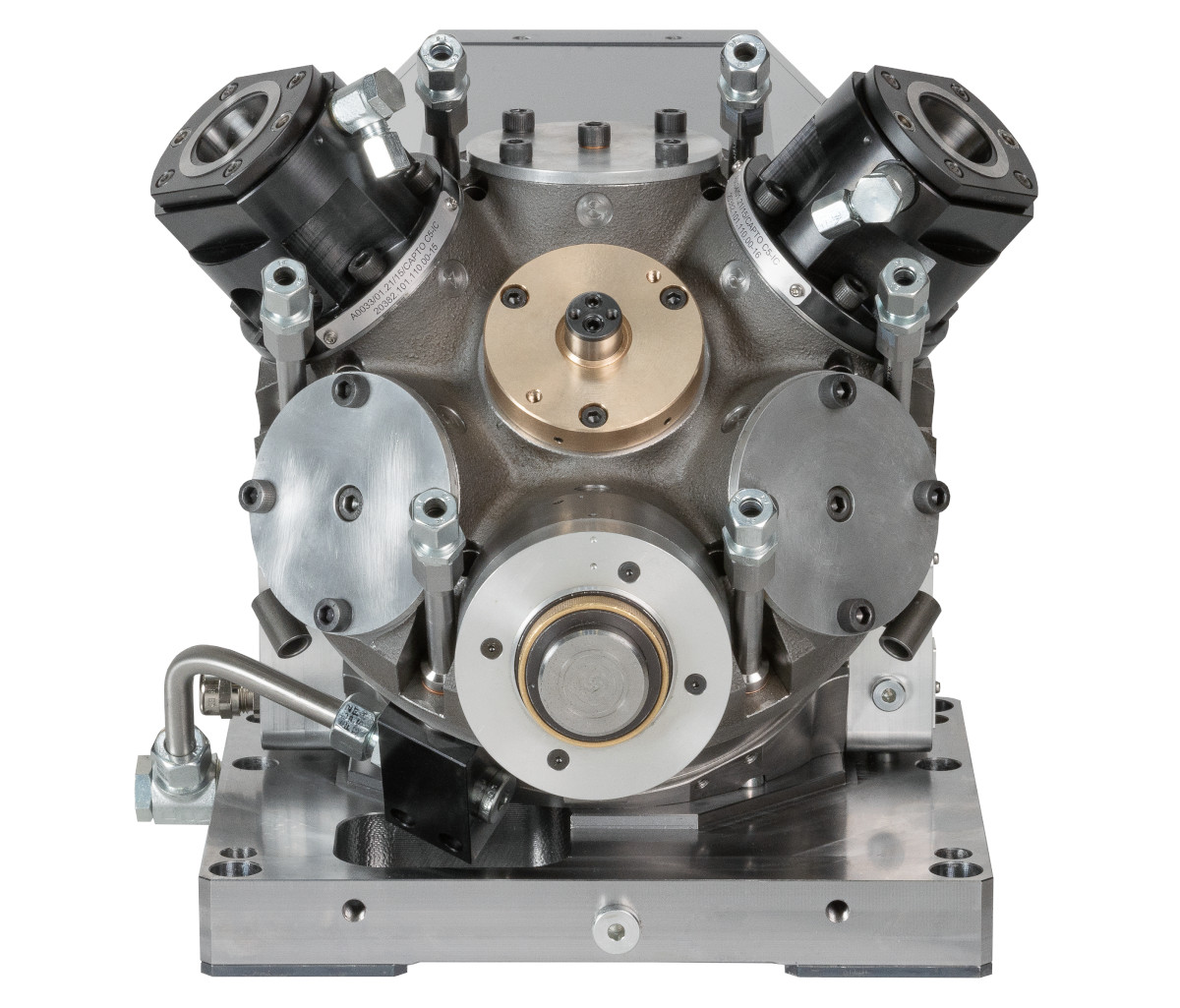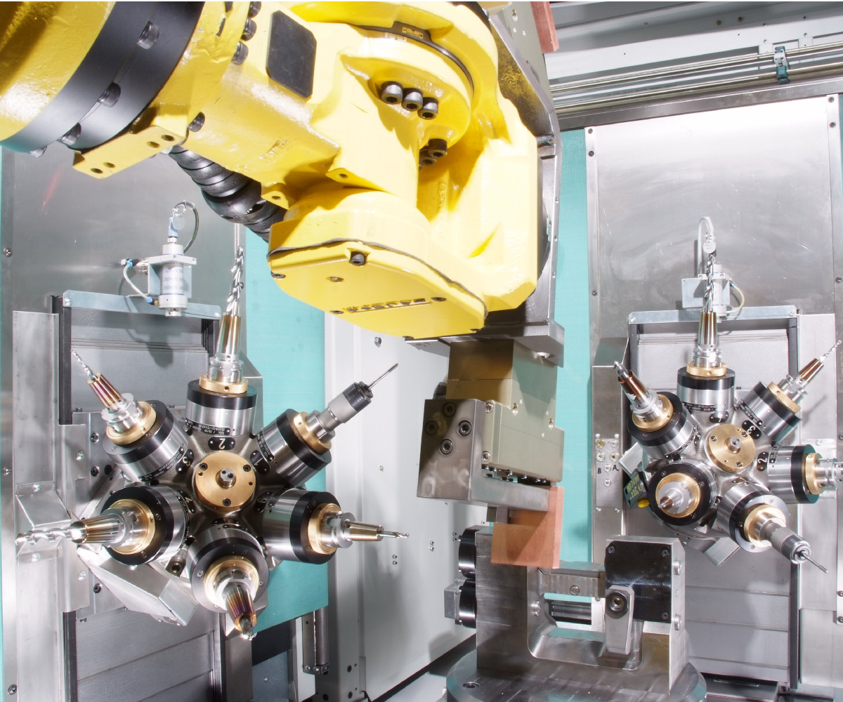 The Hellmerich crown turrets can be equipped with spindles and driven tools, such as multi-spindle heads or angular heads. Superstructures such as pneumatic grinding spindles are also available, as are VDI fixtures for rigid tools.